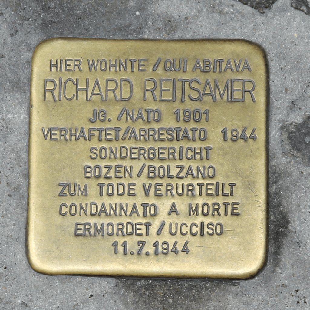 L’ora decisiva per Reitsamer scatta al suo ritorno da un periodo di lavoro in Svizzera. Nel 1939, di fronte all’Opzione, decide di scegliere la cittadinanza italiana. Ciononostante nel 1944, dopo l’occupazione nazista, riceve la cartolina precetto per l’esercito del Reich. La sua mancata riposta a questa chiamata lo condurrà al patibolo, nel giro di pochi mesi. Don Giovanni Nicolli, il coraggioso cappellano delle carceri di Bolzano in quegli anni bui, ha per Richard questa definizione: “Nobile figura di vero cristiano, della forte tempra degli antichi martiri, ha saputo, in ossequi alle parole del Papa, fare sacrificio della propria vita nella pienezza delle sue forze a soli 43 anni. Uomo di grande fede, dei quali ancora molti si trovano nella nostra regione della Venezia Tridentina, degno figlio del martire san Vigilio”. È proprio don Nicolli che condivide e racconta le ultime ore di Richard. “Quale cappellano delle carceri di Bolzano – scrive nel suo diario – sapevo che Reitsamer era in carcere da qualche mese, quale renitente alla leva, ma non avevo mai giudicato il suo caso grave. Un giorno però al Tribunale Speciale vengo a sapere che se il Reitsamer non avesse cambiato idea, le cose sarebbero andate assai male per lui. Lo avvicinai per sapere chiara la sua situazione. Egli mi dice: ‘Ho ricevuto la cartolina precetto per presentarmi alla leva militare, ma io non ci sono andato, nemmeno al seconda volta e neppure la terza quando i gendarmi mi hanno portato di viva forza. Ho protestato e non mi sono lasciato visitare, dicendo come il Papa che con la pace c’è tutto da guadagnare e con la guerra tutto da perdere. Io non voglio quindi in nessun modo presentarmi alla guerra e neppure al servizio militare. Non che io tema di fare il soldato, ho già preso parte anche alla campagna d’Africa in Abissinia, ma ora il Papa ha parlato e tanto basta’”.