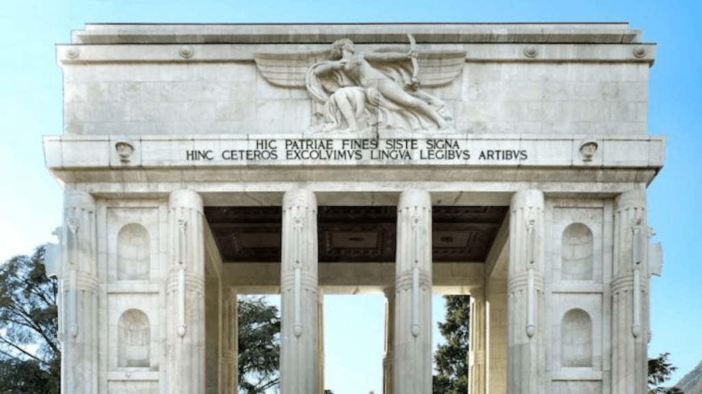 Ad oltre settant’anni di distanza la blasfema retorica di quel regime è ormai un lontano ricordo. Rimangono invece, in centro a Bolzano, i “quattordici enormi fasci littori” e quella scritta che, per chi non conoscesse il latino, significa più o meno: siamo giunti fin qui per educare gli altri (i “barbari”) nella lingua, nelle leggi e nelle arti. Chiunque può comprendere che, pur nel suo elegante classicismo, si tratta di un’affermazione offensiva per qualunque cittadino europeo.