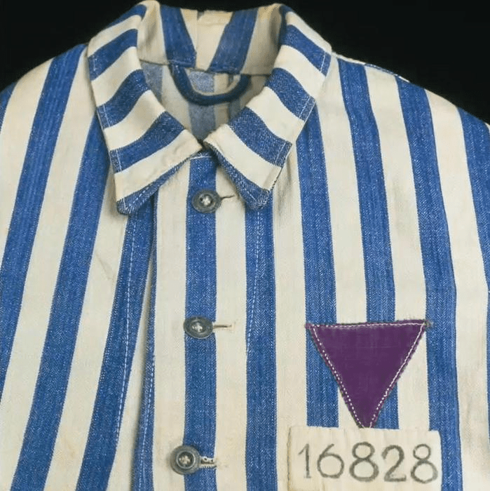 Il marchio che i testimoni di Geova (detti “Bibelforscher”, studiosi della Bibbia) furono costretti a portare nei campi di sterminio fu un triangolo di stoffa viola. In tal modo potevano essere distinti dagli ebrei (stella gialla), dai politici (triangolo rosso), dai delinquenti comuni (triangolo verde), dagli omosessuali (triangolo rosa), dagli “asociali” (nero) e dagli zingari (marrone).