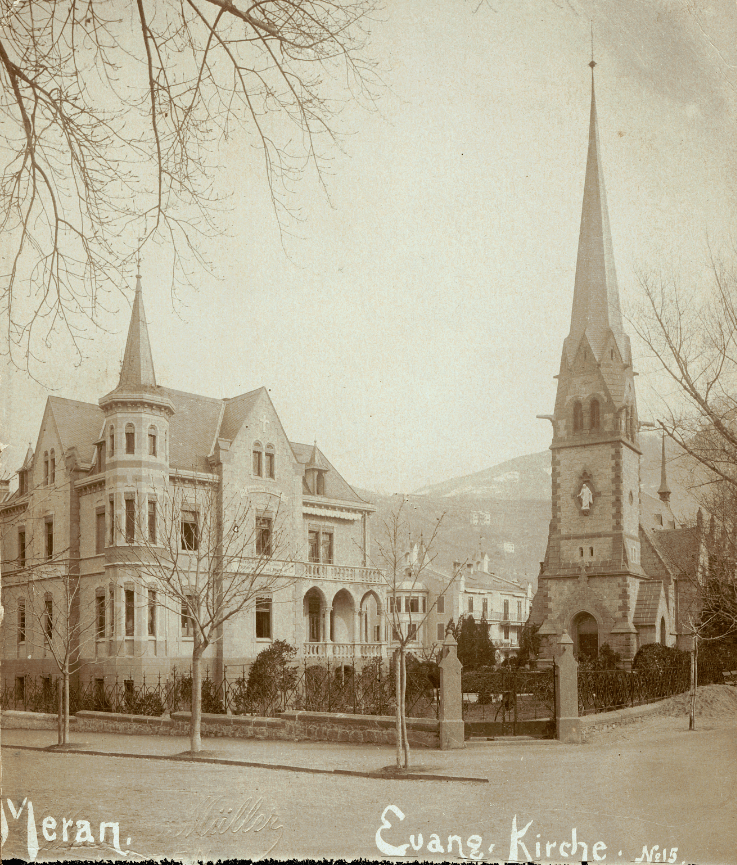 Potrà sorprendere la presenza di una “colonia inglese”. Eppure l’inaugurazione della chiesa anglicana è del marzo del 1891. Risiedono a Merano persone provenienti da ogni parte dell’impero britannico, non solo dall’Inghilterra, ma anche dall’Irlanda e dalla lontana India.