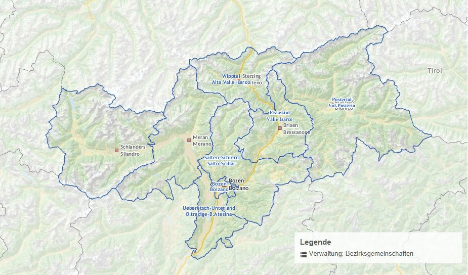 Il territorio altoatesino è suddiviso in sette comunità comprensoriali (in tedesco Bezirksgemeinschaften), eredi dirette delle precedenti comunità montane o di valle sorte agli inizi degli anni Settanta. Territori abbastanza omogenei, tranne forse per il comprensorio Salto-Sciliar che riunisce, per così dire, i comuni “rimasti fuori” dagli altri aggregati. Bolzano costituisce un ottavo territorio. Le competenze del relativo comprensorio, dal 1999, sono state attribuite al comune e sono confluite in parte (assieme a quelle della Ripartizione comunale dei Servizi sociali), nell’Azienda Servizi Sociali di Bolzano (ASSB), ente strumentale costituito, dice lo statuto, “allo scopo di gestire i servizi sociali della città”.
