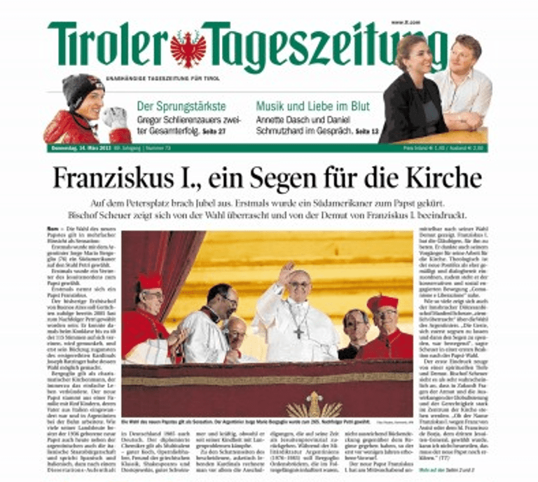 Altre voci da Innsbruck. Elisabeth Rathgeb, direttrice dell’Ufficio pastorale diocesano, vede “molti segni di speranza: il nuovo papa è un gesuita, cosa che depone a favore di una formazione teologica eccellente e di una spiritualità con i piedi per terra. Si chiama Francesco e in tal modo si dà il programma che ha già vissuto come vescovo di Buenos Aires: vicino agli uomini, vicino ai poveri. Saluta i ‘fratelli e sorelle’ e chiede loro di pregare per lui, prima che egli li possa benedire. Come primo latinoamericano, primo gesuita e primo ‘Francesco’ tra i papi, non sembra aver paura delle novità assolute. Gli tornerà comodo in un tempo in cui, nella Chiesa, abbiamo qualcosa da rinnovare”.