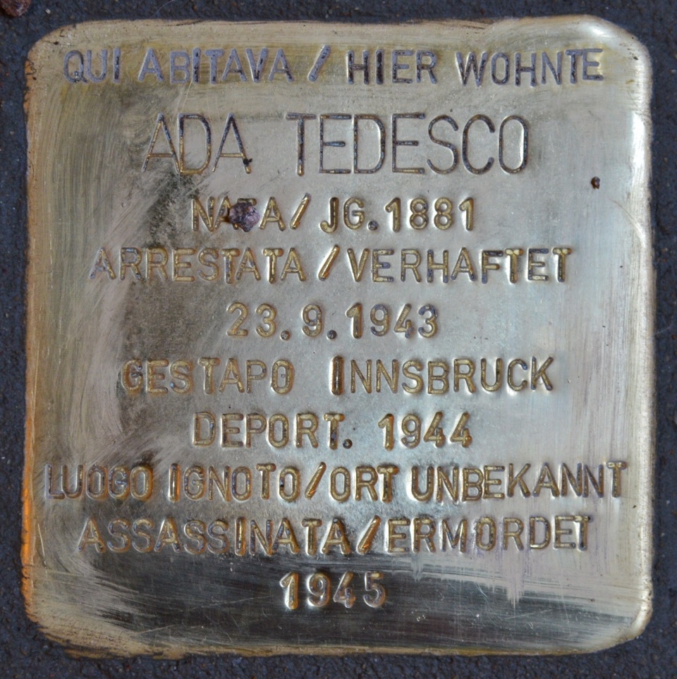 Bolzano – In occasione del Giorno della Memoria in ricordo dello sterminio e delle persecuzioni del popolo ebraico e dei deportati militari e politici italiani nei campi nazisti, l’Archivio Storico di Bolzano rende omaggio a Ada Tedesco, che ha abitato nello stabile in cui ha sede lo stesso Archivio, in via Portici 30. Ada Tedesco era nata a Verona nel 1881 e dal 1941 si era trasferita a Bolzano. Nel settembre 1943 fu arrestata perché ebrea, incarcerata prima a Bolzano e poi a Bressanone, quindi consegnata alla Gestapo di Innsbruck. Probabilmente giunse nel Lager nazista di Reichenau, presso Innsbruck. Secondo alcuni storici, fu deportata poi nel Lager di Auschwitz. Non fece mai ritorno a casa. Ada Tedesco è protagonista del cosiddetto “Oggetto del Mese” dell’Archivio Storico.