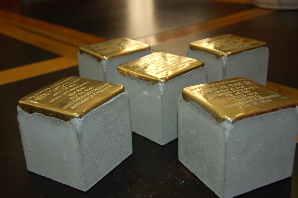 Molte le iniziative coordinate dal Comune. Nell’ambito del progetto culturale “I Luoghi della memoria”, in particolare, l’Archivio Storico di Bolzano propone un percorso tra le “pietre d’inciampo”, posate nel centro cittadino nel 2015, “piccole opere d’arte urbana che ricordano, in modo puntiforme, centinaia di persone e famiglie deportate nei campi di sterminio nazisti”. Come anche in molte altre città europee, nel selciato stradale dinnanzi ai luoghi ove i deportati hanno vissuto, lavorato o dove sono stati arrestati, sono stati incastonati normali cubetti di porfido da pavimentazione, ove sul lato esterno è applicata una piccola targa lucida di ottone che riporta il nome e gli estremi cronologici della vita dei deportati. Una sorta di monumento “per difetto”, dove viene segnalata un’assenza, che contribuisce in maniera pregnante a vivificare il ricordo di queste persone e dei tragici eventi che le hanno coinvolte. I pieghevoli illustrativi del percorso, in italiano e in tedesco, assieme agli altri finora realizzati nell’ambito del progetto dei “Luoghi della memoria”, sono stati messi in distribuzione gratuita in diversi punti della città: presso l’Info-point culturale del Comune, nell’atrio dell’Archivio Storico in via Portici 30, presso l’Azienda di Soggiorno in piazza Walther, presso il Museo Civico e la Biblioteca civica.