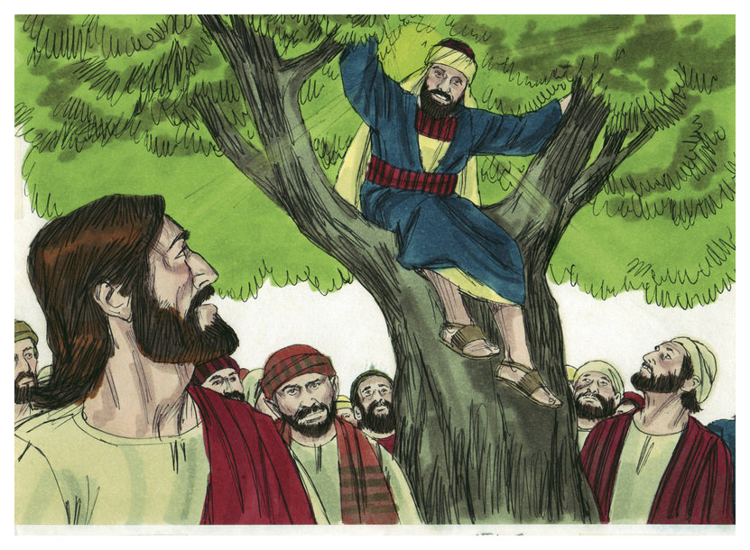 Zachée grimpe sur le sycomore pour voir. Jésus, en passant, lève les yeux. Les yeux de l’un entrent dans les yeux de l’autre.