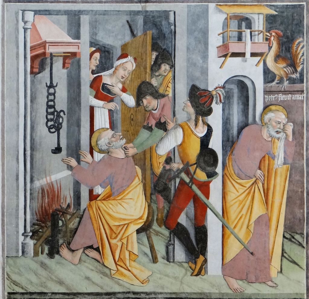 La description que fait Matthieu de la trahison de Pierre est impitoyable. Pierre sait bien que nier la vérité sur sa relation avec Jésus, c’est le trahir. C’est l’abandonner aux mains de ceux qui veulent sa mort. Pourtant, il fait d’abord semblant de ne pas comprendre, puis il dit qu’il ne connaît pas Jésus, enfin il lui crie dessus, en faisant des imprécations et en se parjurant.