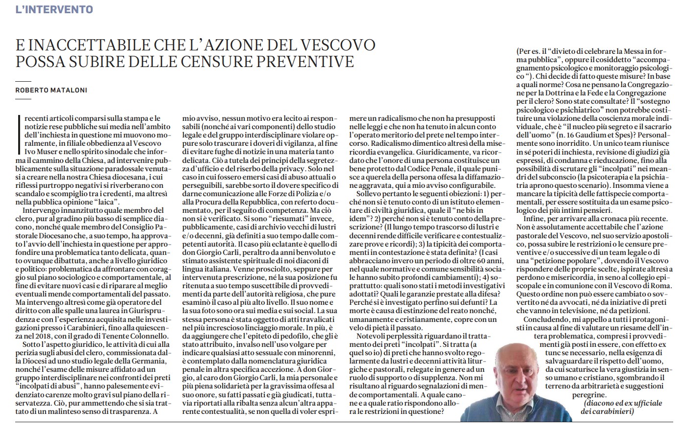 Ovviamente se don Carli fosse colpevole di quanto gli si ascrive, la scelta del vescovo di assegnargli un incarico pastorale in val Pusteria sarebbe, come è stato detto, una “decisione sbagliata”. Se invece, come molti ritengono – tra questi chi scrive – don Giorgio è innocente, allora si è trattato di una decisione giusta, coraggiosa e anche coerente con il percorso di tutela delle persone abusate (dentro e fuori la Chiesa) avviato dalla diocesi.